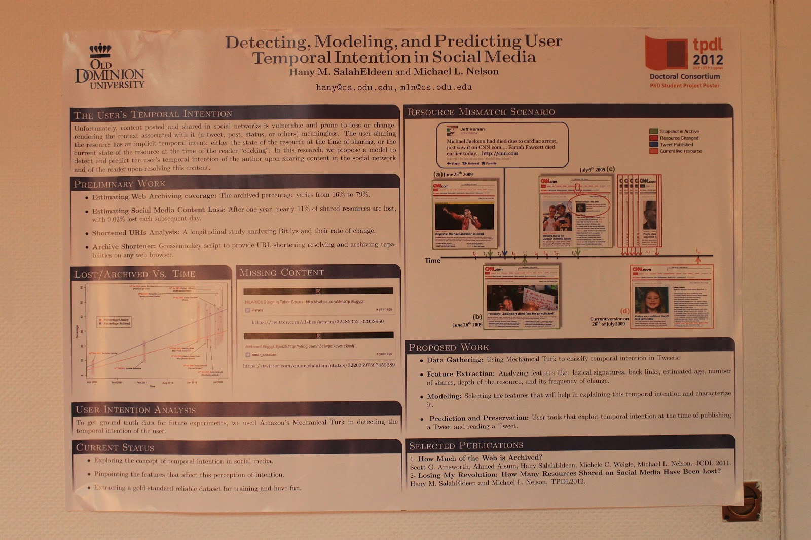 paper which was entitled “Losing My Revolution: How Many Resources Shared on Social Media Have Been Lost?” which paved the way in the