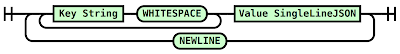The above railroad diagram illustrates the grammar of the CDXJ format. CDXJ is a subset of ORS as it introduces few extra restriction in the syntax that are not present in the ORS grammar. In the CDXJ format the definition of the key string is strict as it does not allow leading spaces before the key or empty string as the key. If there are spaces in the CDXJ key string, it is considered a compound key where every space separated segment has an independent meaning. Apart from the @-prefixed special keys, every key must have the same number of space separated fields and empty fields use the placeholder "-". CDXJ only allows a single SPACE character to be used as the delimiter between the parts of the compound key. It also enforces a SPACE character to separate the key from the JSON value block. As opposed to the ORS, CDXJ does not allow TAB character as the delimiter. Since the keys cannot be empty strings in CDXJ, there must be a non-empty key associated with every value in it. Additionally, the CDXJ format also prohibits empty lines. These restrictions are introduced in the CDXJ to encourage its use as sorted files to facilitate binary search on the disk. When sorting CDXJ files, byte-wise sorting is encouraged for greater interoperability (this can be achieved on Unix-like operating systems by setting an environment variable LC_ALL=C). On the semantics side CDXJ introduces optional @-prefixed special keys to specify metadata, the @keys key to specify the field names of the data entries, and the @id and the @context keys to provision linked-data semantics inspired by JSON-LD.