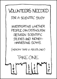 | The XKCD comic "Study" parodies the challenges of recruiting study participants. |