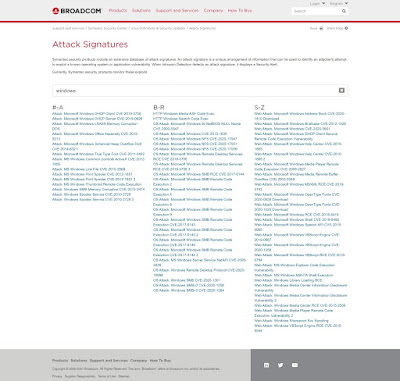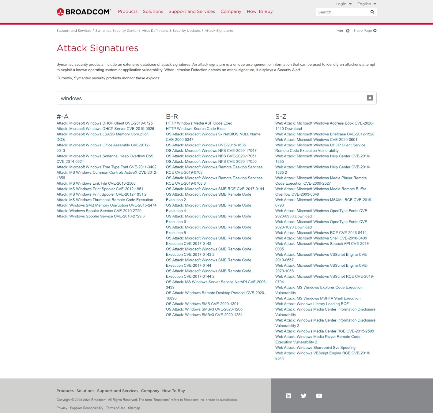 | Figure 2: Excerpt from Symantec Security Center. (Source: https://www.broadcom.com/support/security-center/attacksignatures) |
